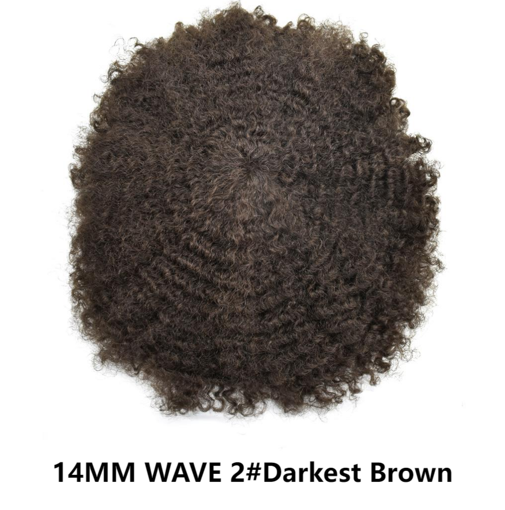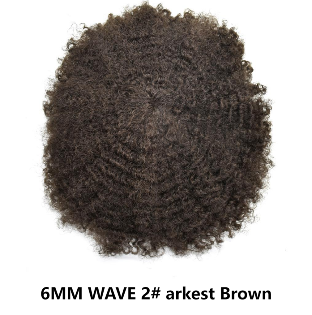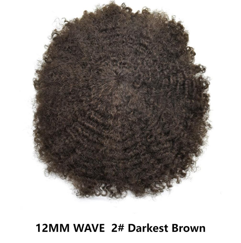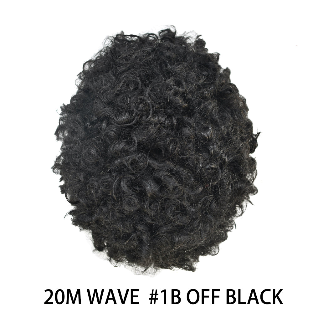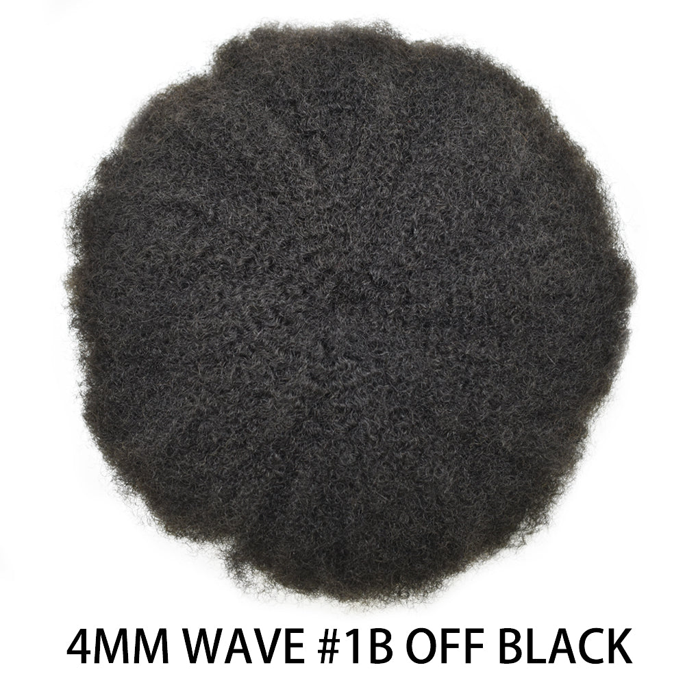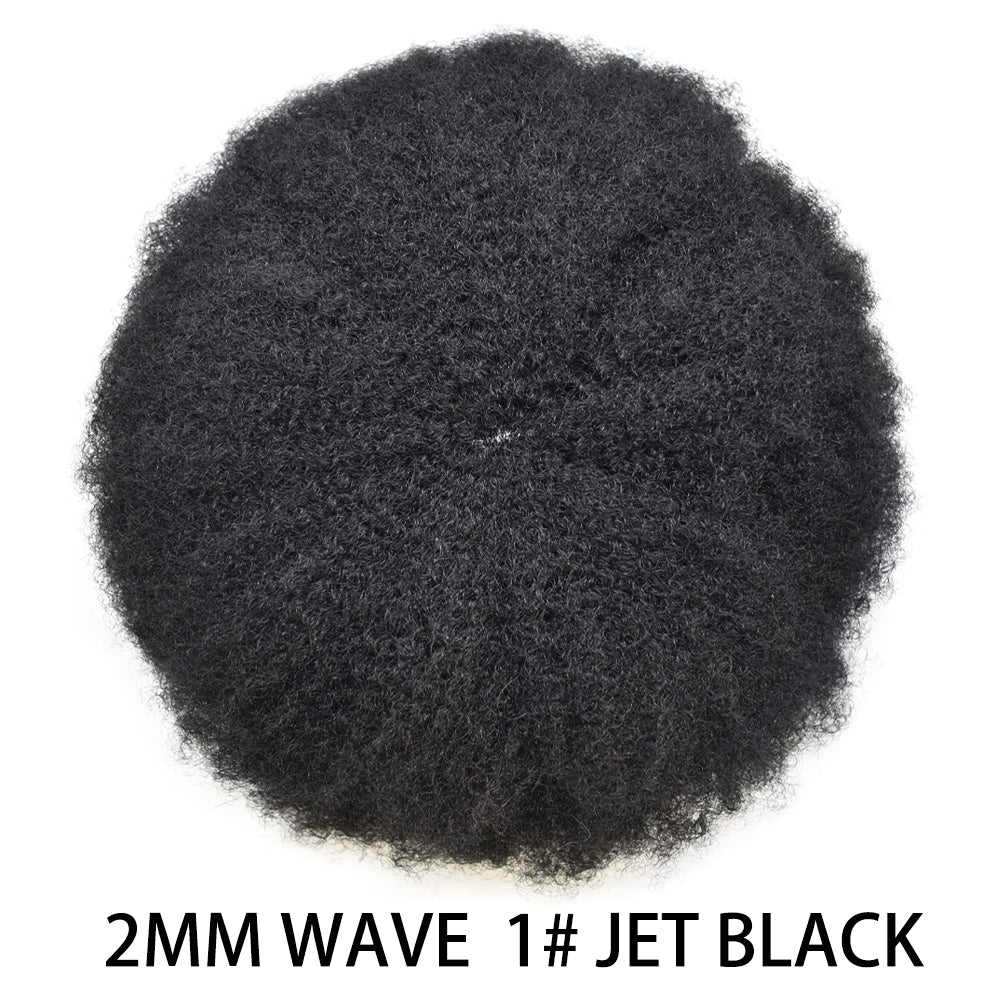 【Afro Hair System Color Density】Afro curly hair piece for black men 4mm 6mm 8mm 10mm 12mm 14mm 16mm 20mm.Mens toupee hair available color:Black,Brown,Ash Grey and Light Blonde.Mens hair toupee white gray hair is synthetic fiber.60RY# is All gray human hair.Afro hair system density is 120% medium light to medium density