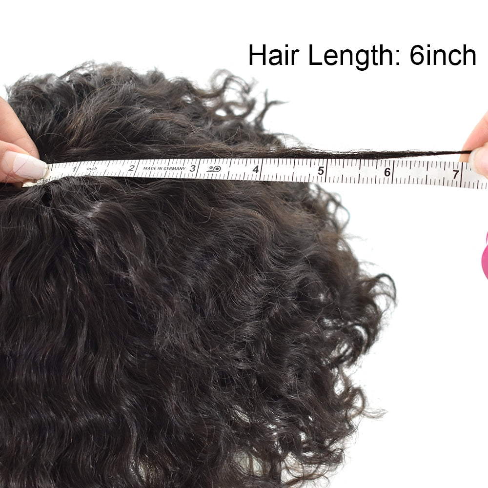 【Afro Hair Piece Material】Black men hair system 100% Brazilian human hair,high quality men hair piece,Afro hair piece black men no tangle,no shedding.Black men hairpieces length about 6inches.Durable and soft enough and smooth,slight wave,natural looking,let you easily style and trim, don't worry about hair is too short