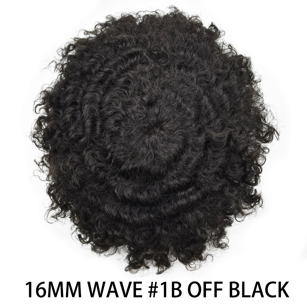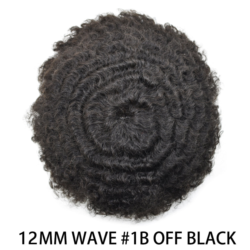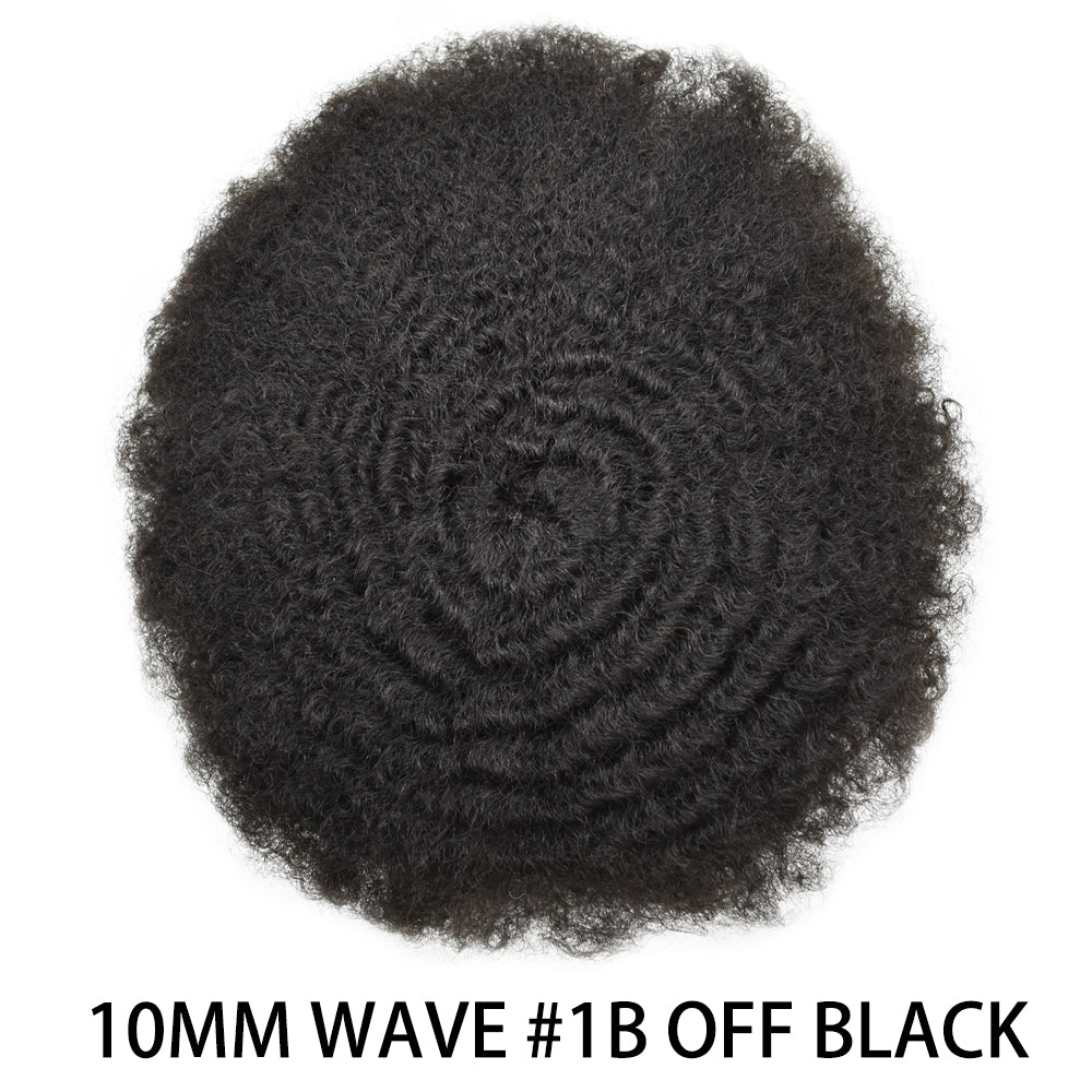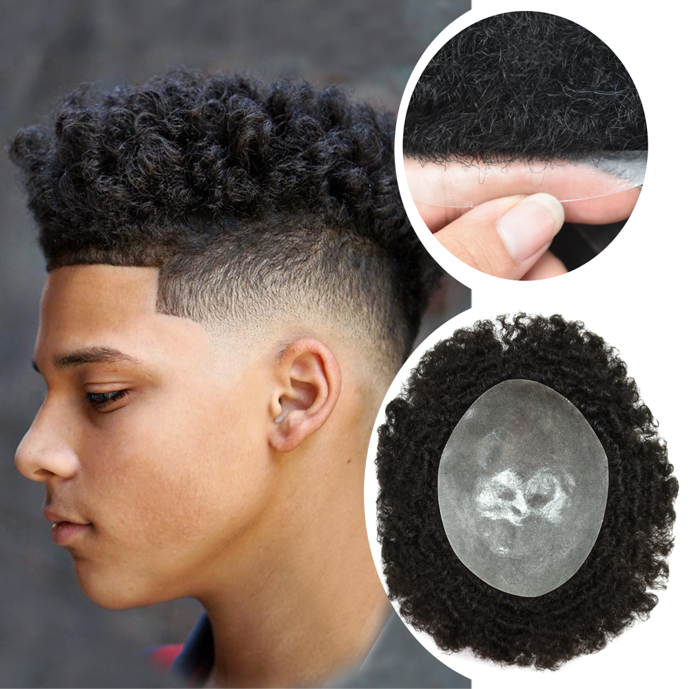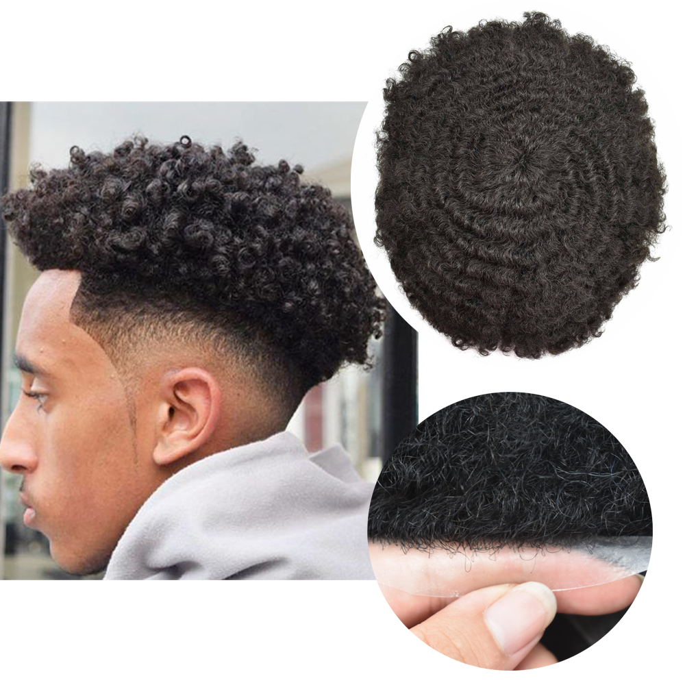 【Afro Hair Units Base Material】Afro hair piece for black men curly use full skin clear poly thickness is 0.12mm to minimize hair loss.Mens toupee soft enough ,smooth and durable.Hair units for men no burden on the scalp.Durable hair system for men easy to attach and remove