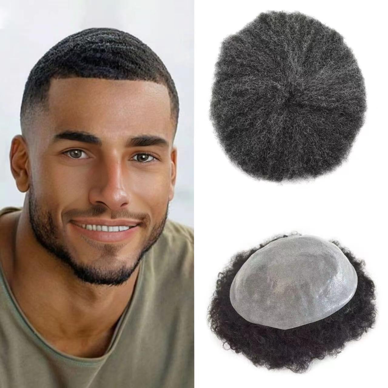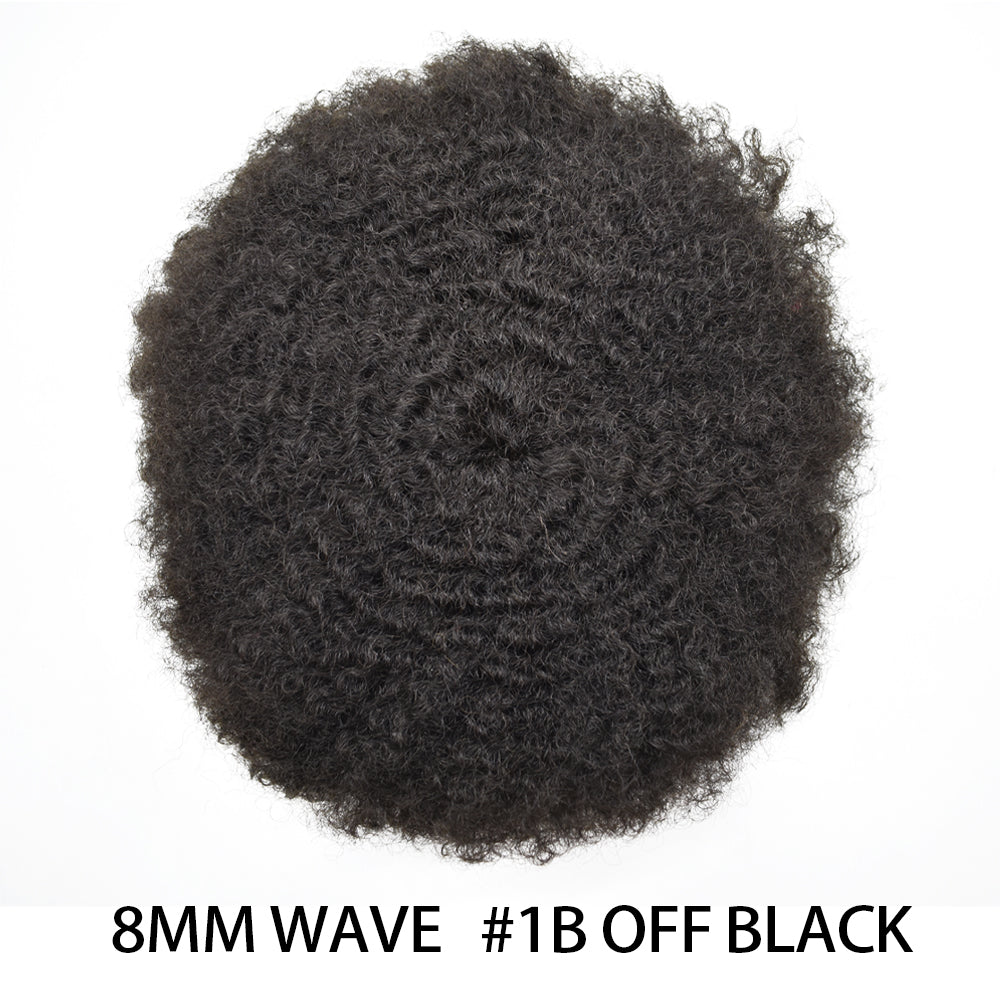 【Black Mens Hairpieces Base Size】Afro curly toupee for black men curly human hair size:8"X10"Width (from side to side)X Length (from front to back).Afro hair system for black men suitable for most people's needs