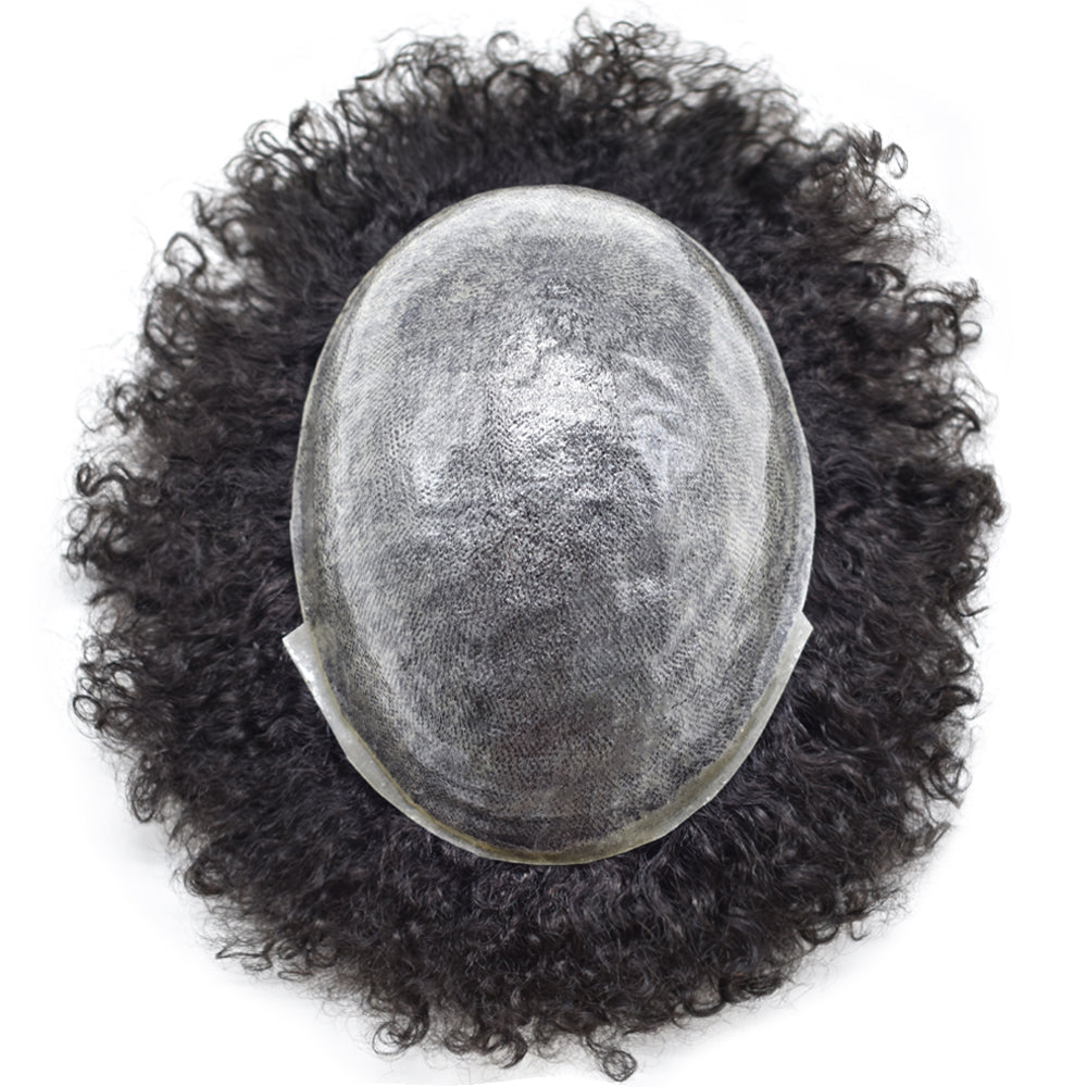 SINGA HAIR Afro Toupee For Black Men Full PU Curly Hair Unit For American African Men US Stock