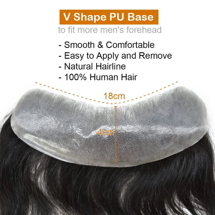 SINGA HAIR Men Frontal Hair System V-Looped PU Toupee for Men Natural Hairline Mens Toupee