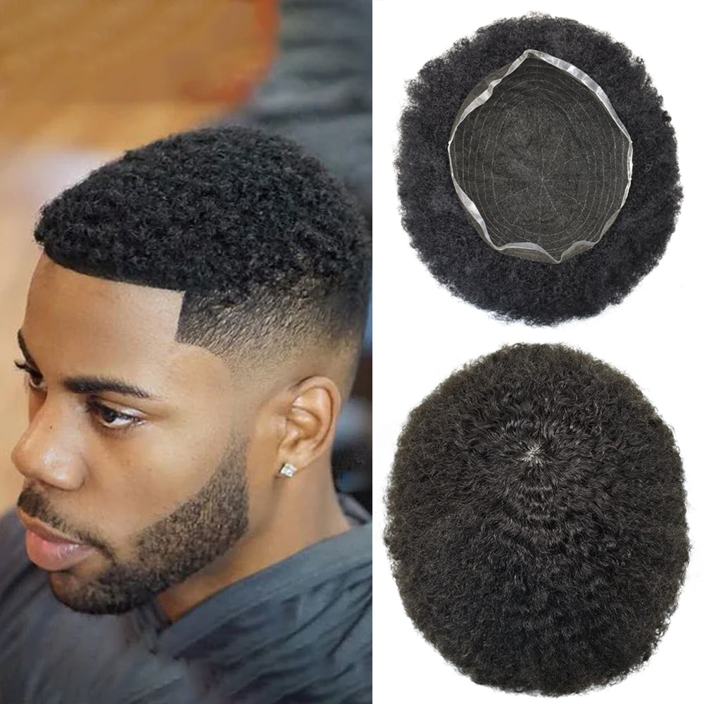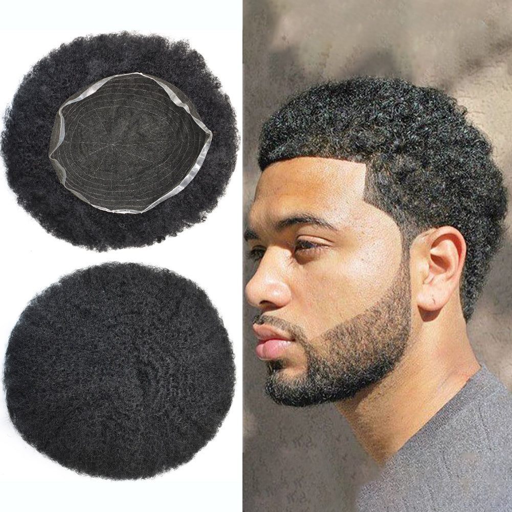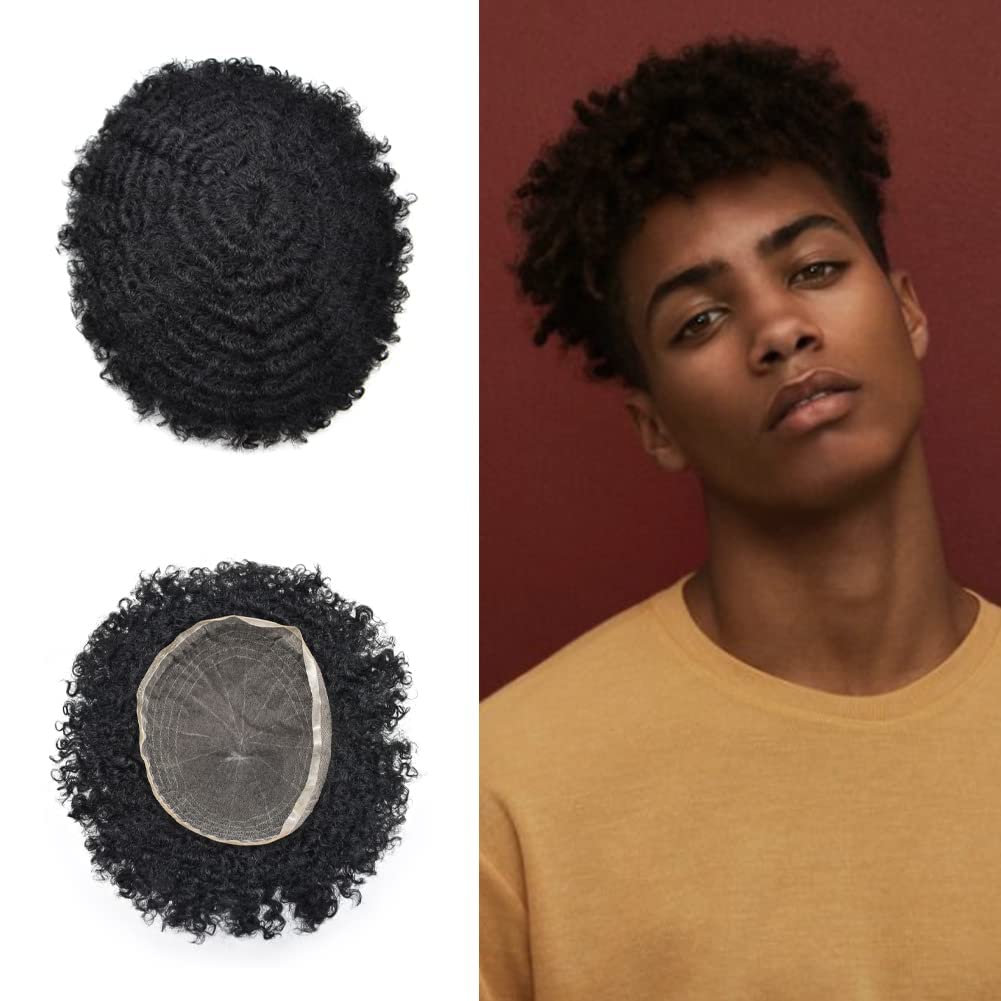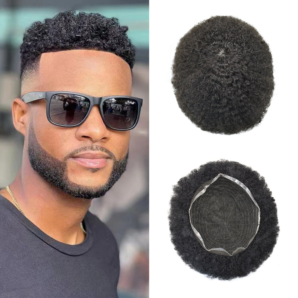 【Black Mens Hairpieces Base Size】Afro toupee for black men curly human hair size: 6"X8" 6"X9" 7"X9" 7"X10"8"X10"Width (from side to side)X Length (from front to back).Afro hair system for black men suitable for most people's needs