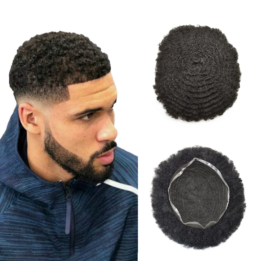 【Afro Hair Piece Material】Mens hair replacement system 100% Brazilian human hair,high quality men hair piece.Mens toupee no tangle,no shedding.Black men hairpieces length about 6inches.Durable and soft enough and smooth,slight wave,natural looking,let you easily style and trim, don't worry about hair is too short