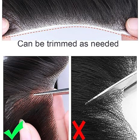 ① 100% European virgin human Hair piece toupee for men,It can be washed,restyled,cut,flat ironed like your real hair.A good hair replacement system for men who loss on your forehead Hairline② Full lace mens frontal hairline hairpiece hair piece for men base size:1.57x6.29 INCH.Freestyle,12g light density easy to tape and clean.You can cut mens toupee into a shape that suits you