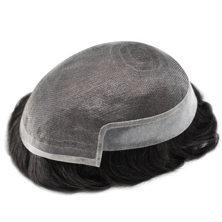 SINGA HAIR Men's Toupee Human Hair Replacement System French Lace Center Clear Poly Skin NPU Natural Looking Hairpiece Toupee for Men