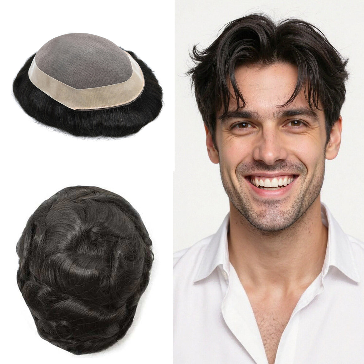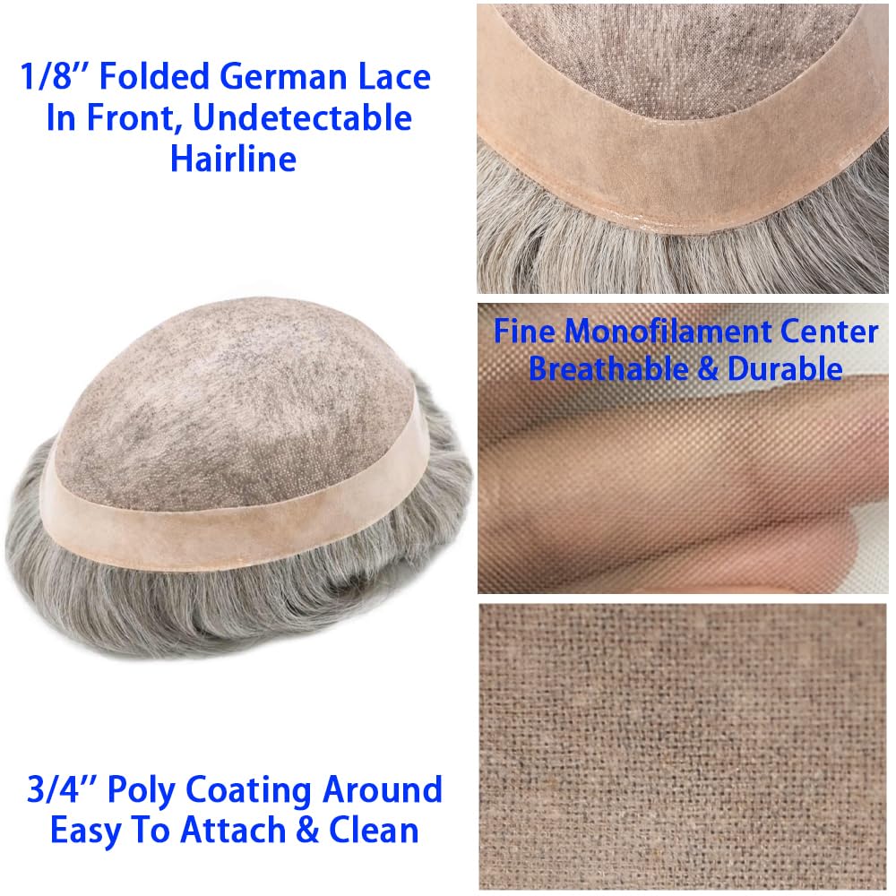 SINGA HAIR System for Mens Hair Piece US STOCK Monofilament with PU Coating(NPU) Toupee Folded Lace Front Natural Hairline Mens Toupee