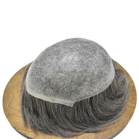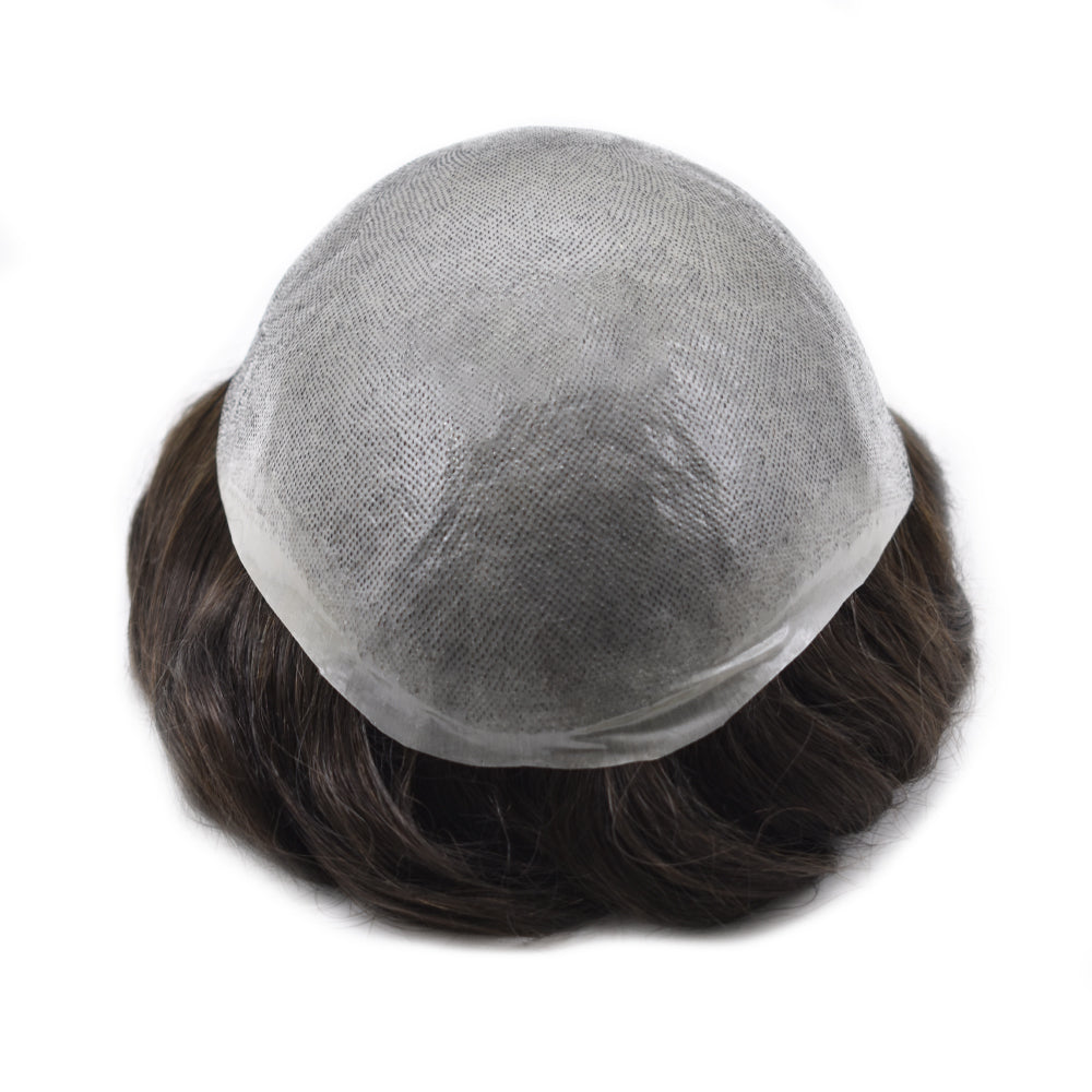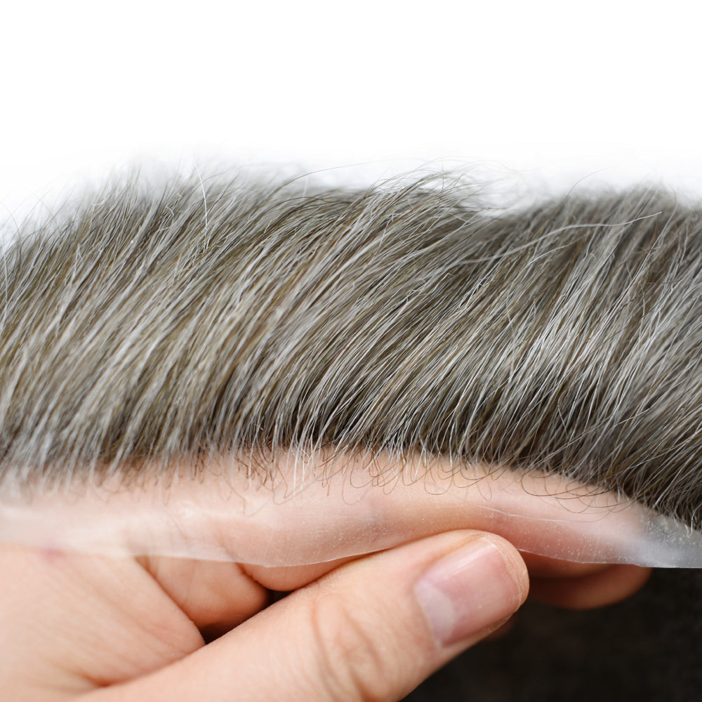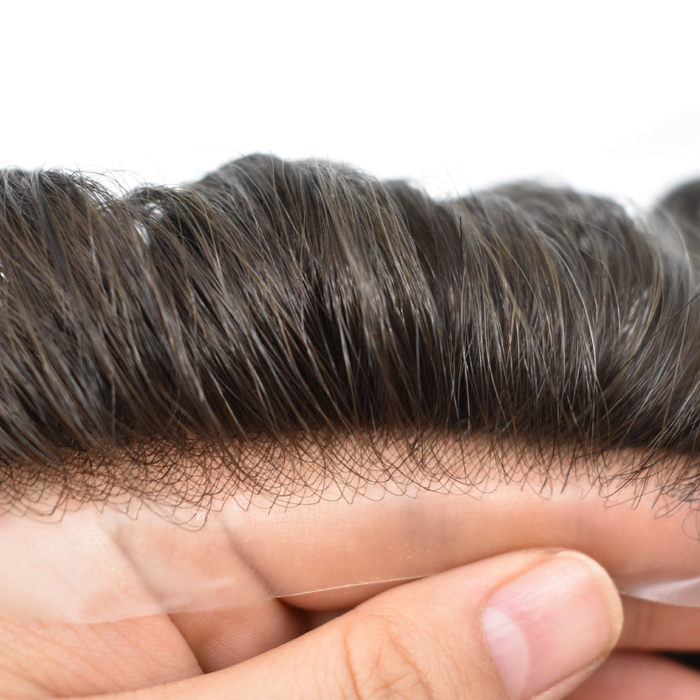 The base on this toupee is made from ultra-lightweight, comfy, with a thin poly for added durability. The hair is 100% human, carefully treated with the same process we use on our custom systems to be as soft and smooth as naturally growing hair.