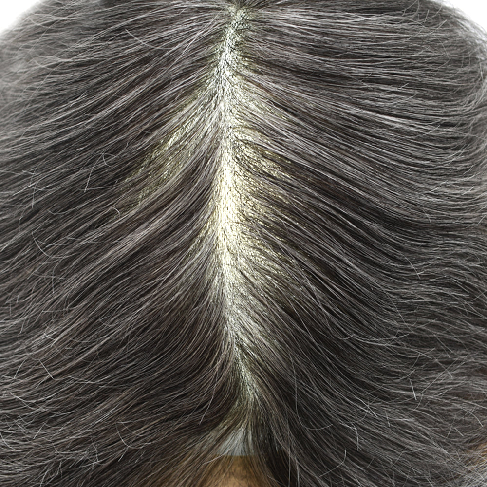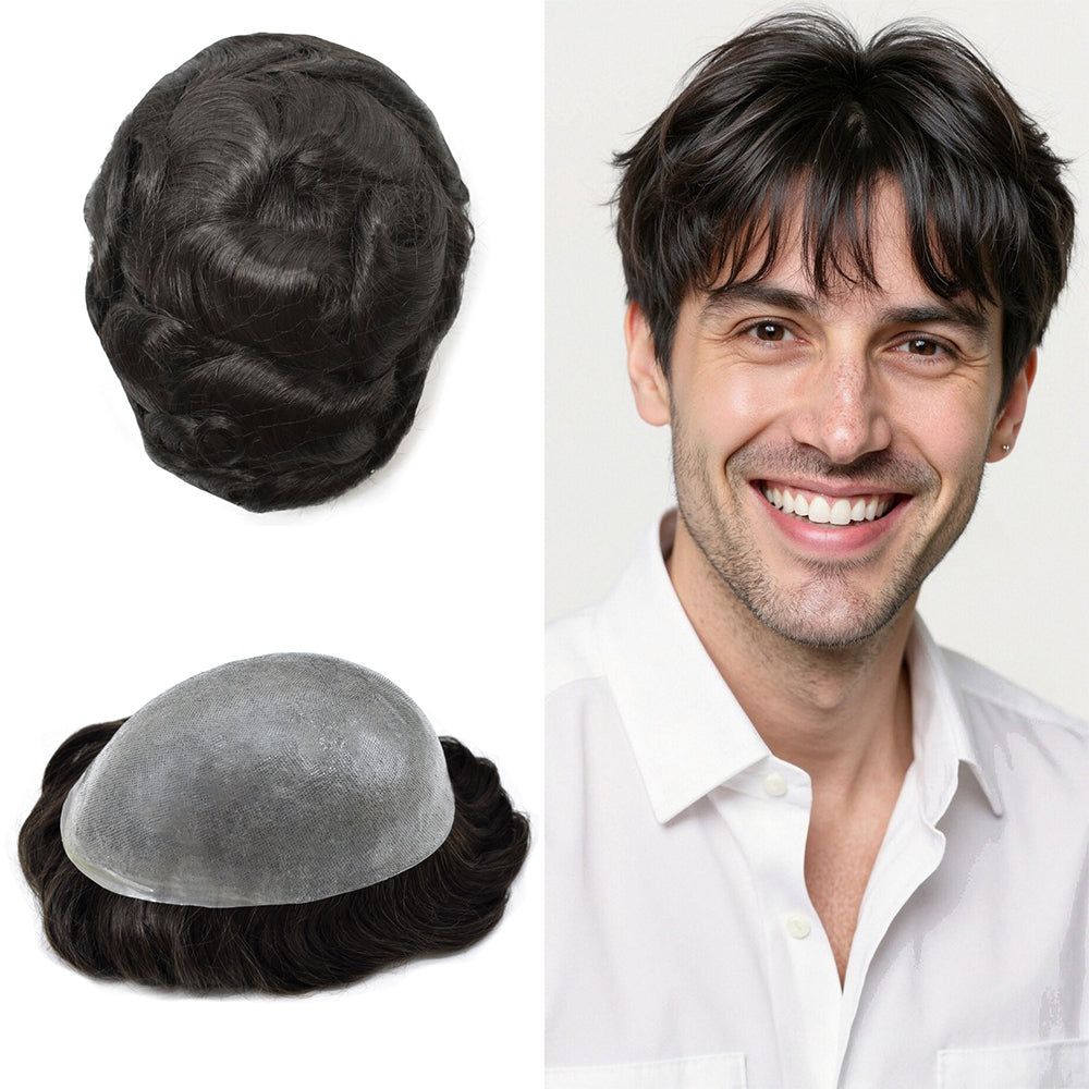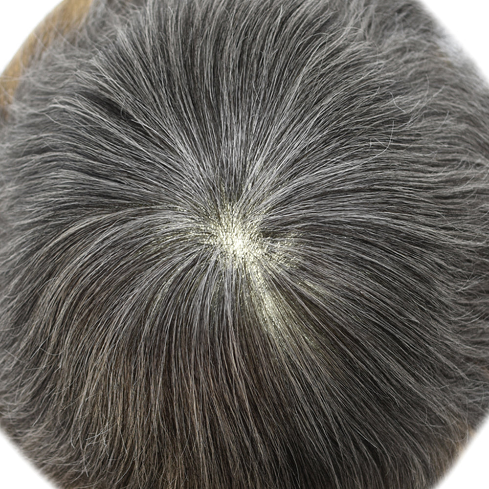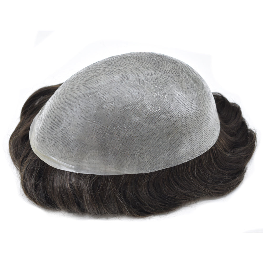 The base on this toupee is made from ultra-lightweight, comfy, with a thin poly for added durability. The hair is 100% human, carefully treated with the same process we use on our custom systems to be as soft and smooth as naturally growing hair.