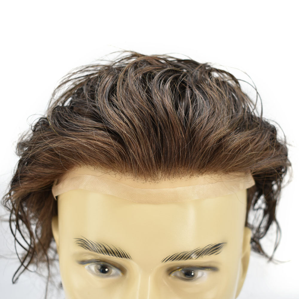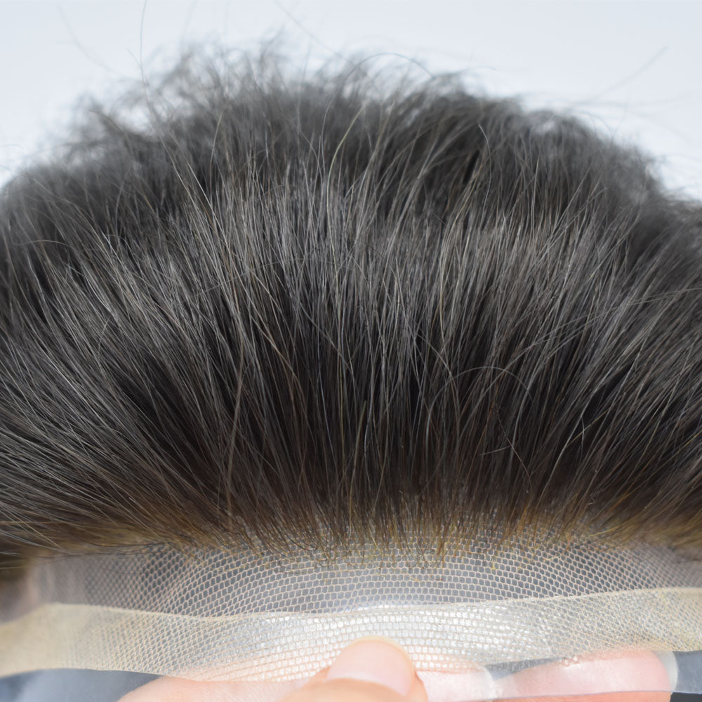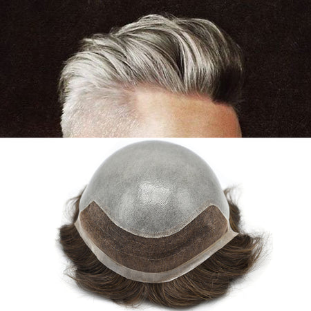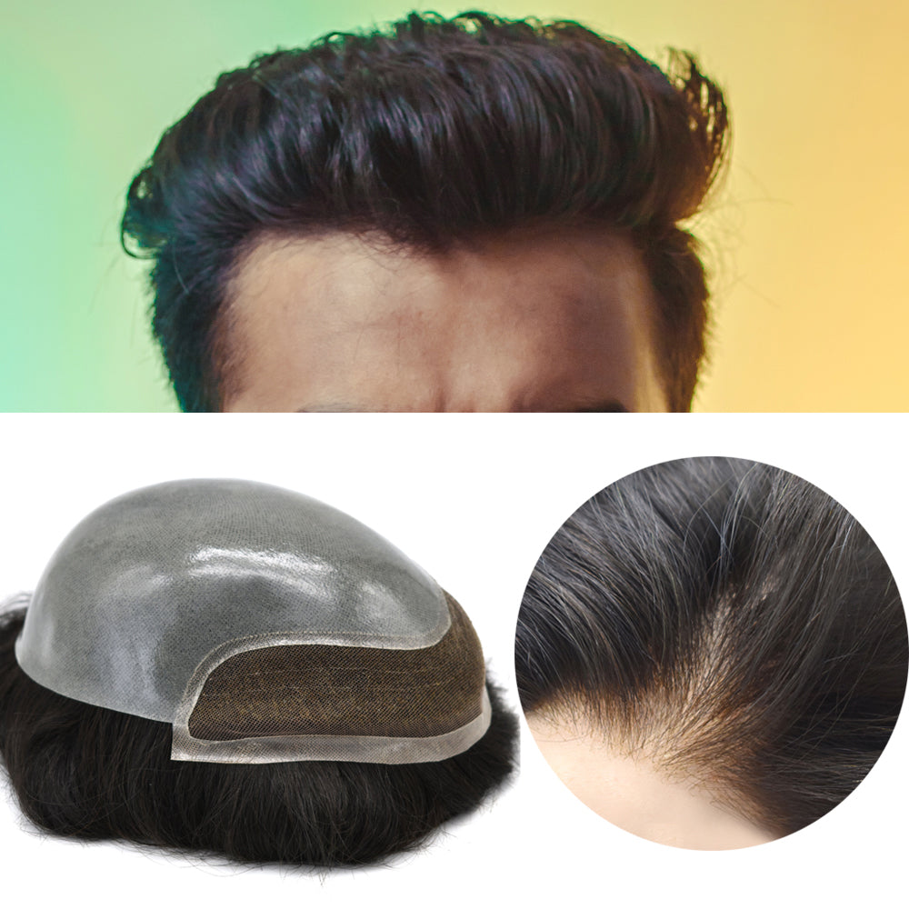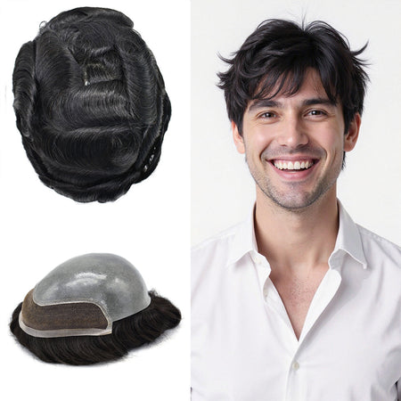 [Base Design]: Hair replacement system for men base material ues superfine French lace and clear PU. Front bleached makes a natural hairline.Air light, brings comfort, soft, and breathable wearing experience to you, skin-friendly and non-allergic. Easy to wear with tapes or glue
