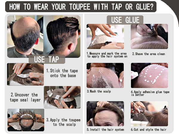 3. If you are new to wearing toupees, we advise you have a professional hairstylist attach the unit to your head. We are not responsible for tearing off the hair system due to improper using method.