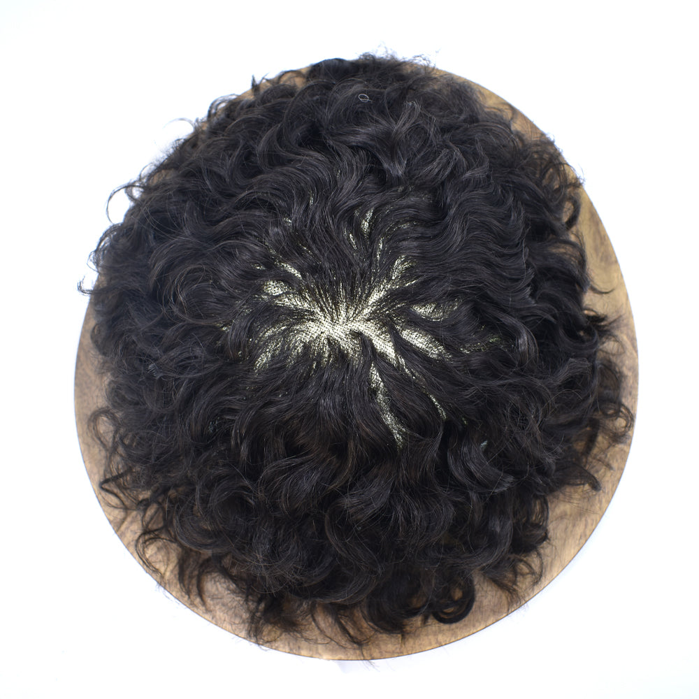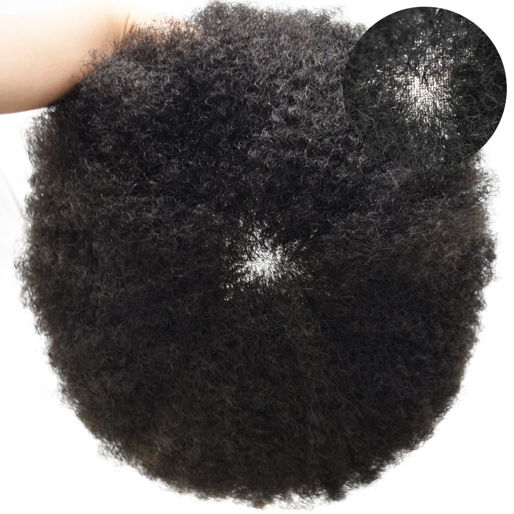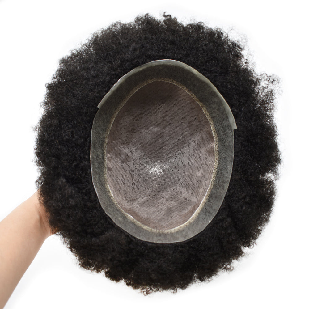 SINGA HAIR US STOCK Afro Toupee For Black Men Fine Mono Men Wave Hair Unit Clear Poly Around Kinky Curly Hairpiece
