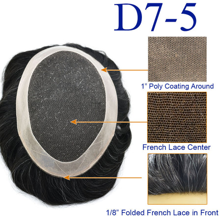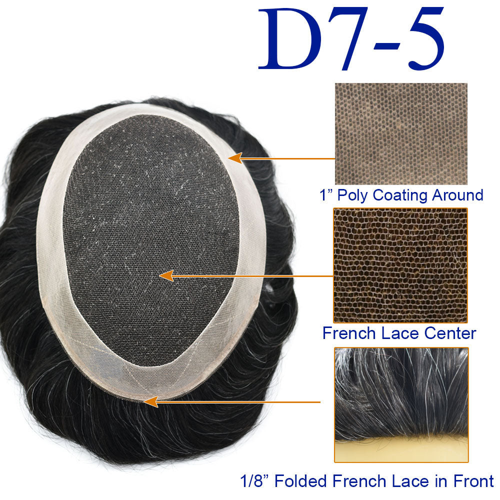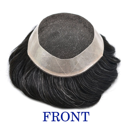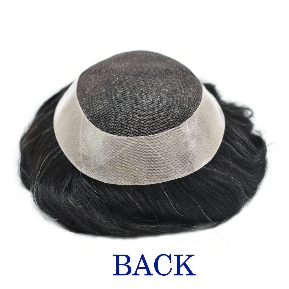 SINGA HAIR Hair Replacement Systems Real Human Hairpiece French Lace Toupee for Men Poly Coating Around Mens Hair System