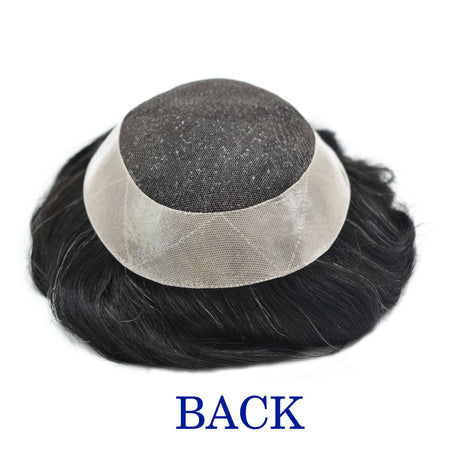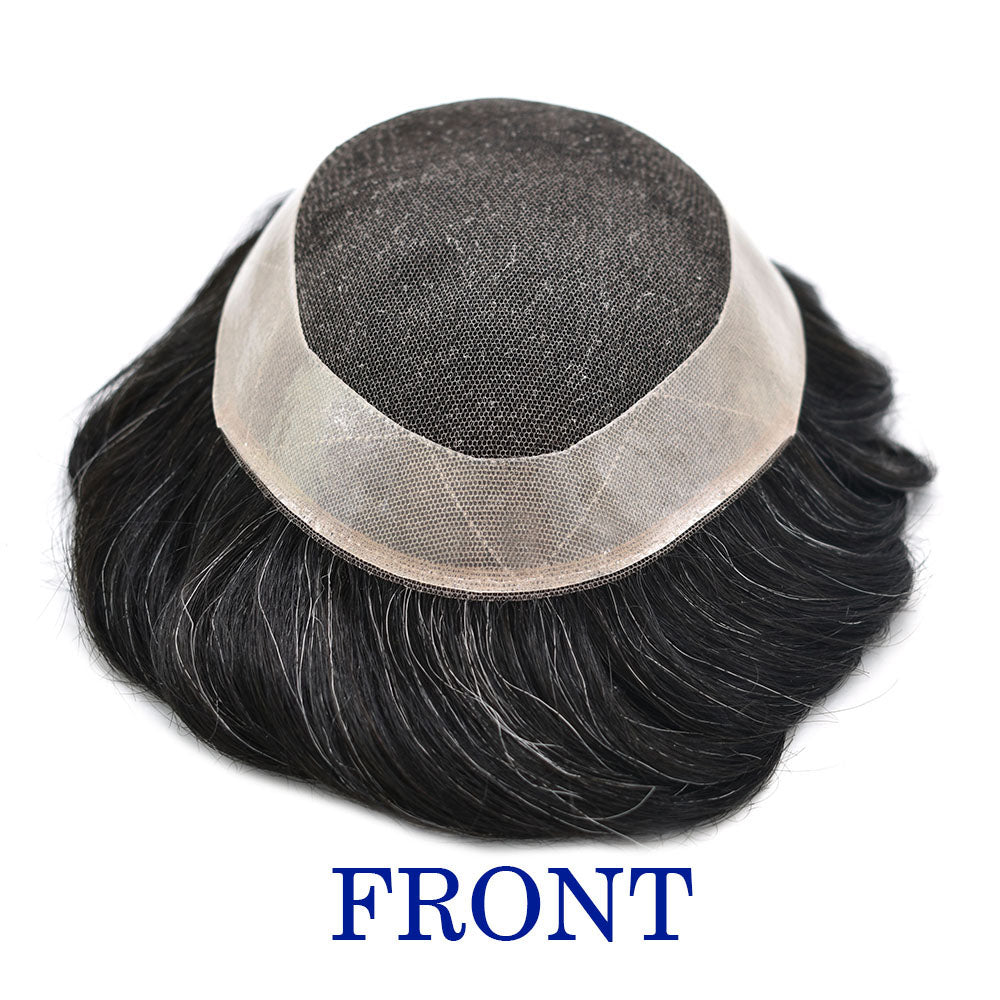 The base on this system is made from ultra-lightweight, comfy, cool French lace, with a thin poly perimeter for added durability. The hair is 100% human, carefully treated with the same process we use on our custom systems to be as soft and smooth as naturally growing hair.