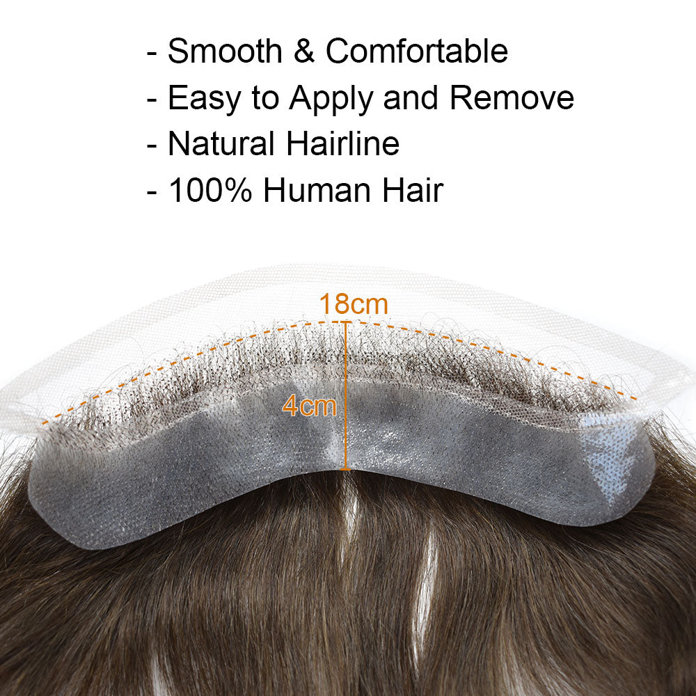 SINGA HAIR US Stock Mens Hair System Frontal Hairpiece Forehead Hairline Toupee French Lace With PU Natural Hairline For Receding Hairline 4X18cm